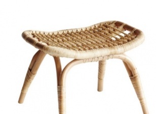 Taburete tireta y rattan, complemento para el exterior para ampliar numero de asientos, elevar los pies de un sillon de mimbre o bambu