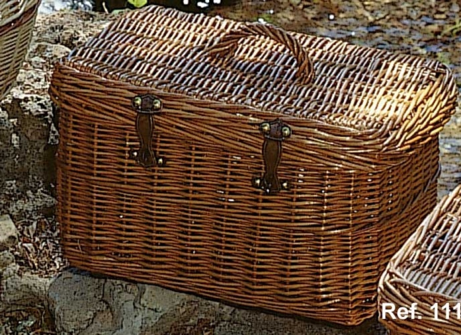 Maletin elaborado en mimbre artesanal por cesteros de la zona. El color es buff o mimbre cocido.